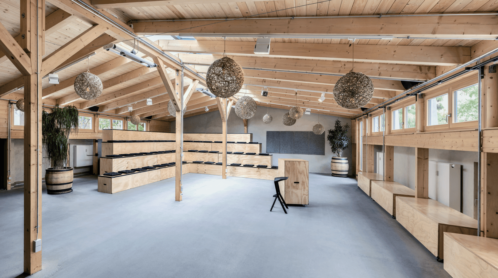 Klimaanlage 15 kW, modulares Tribünensystem & Workgroup Möbel, Hightech Präsentations- & Arbeitsequipment, flexibel gesteuertes Lichtsystem, verdunkelbar, Sechspunktbeschallung, Glasfaser-Internet 1GBit + 500MBit